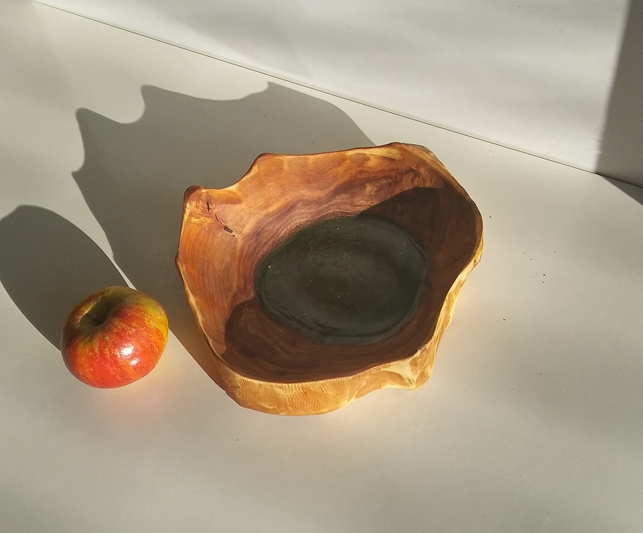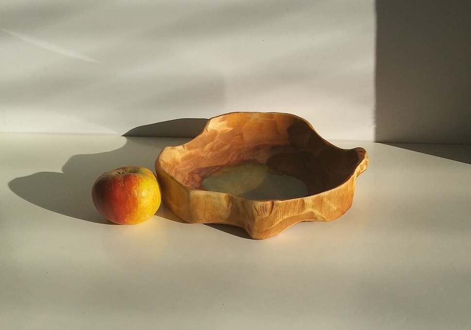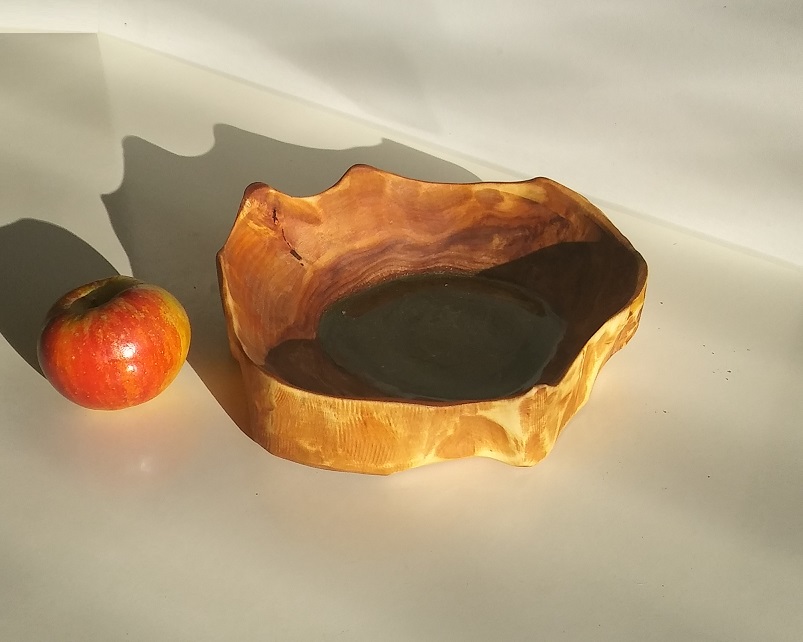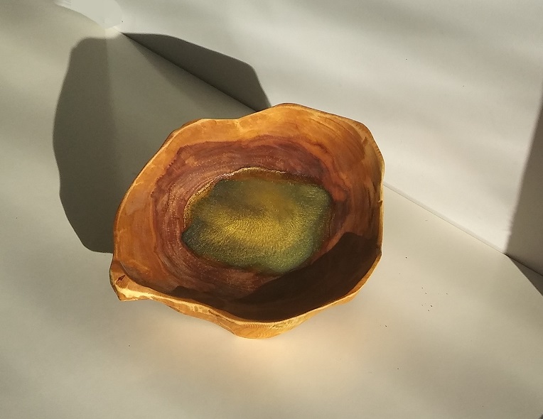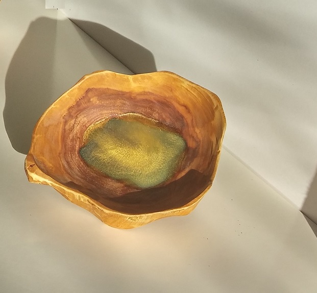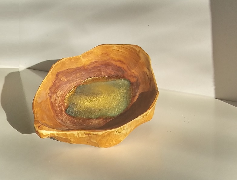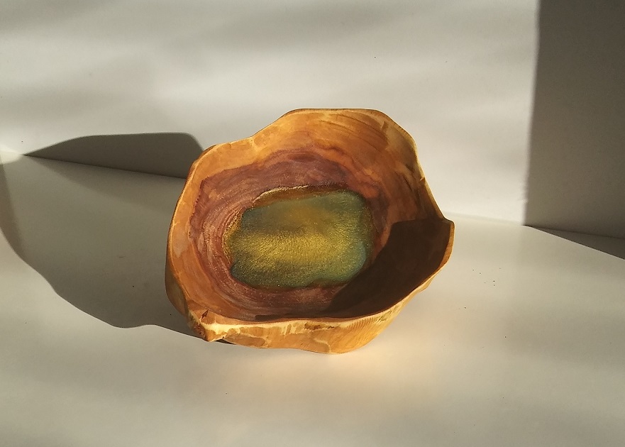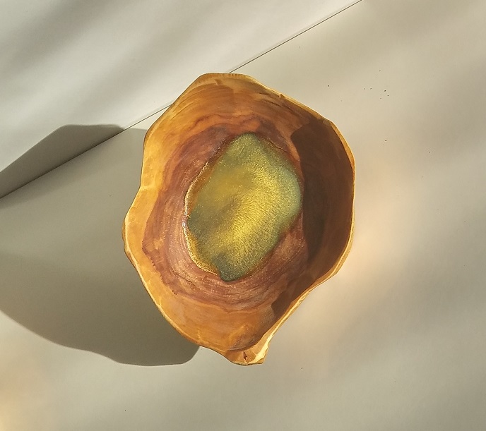 Unikatna lesena dekorativna posoda z modro epoxy smolo in zlatim prahom.